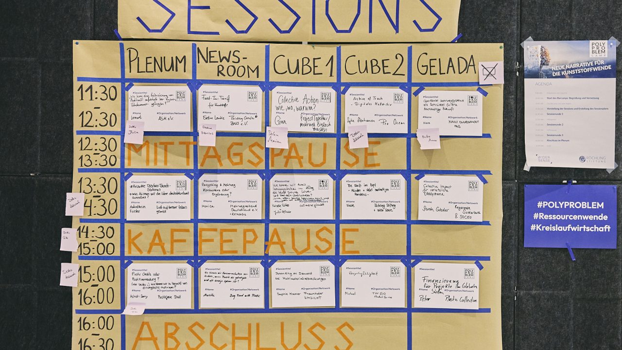 In 16 Sessions wurde beim ersten POLYPROBLEM Camp „Neue Narrative für die Kunststoffwende“ am 30.09. in Frankfurt besprochen, wie ein gesellschaftlich verantwortlicher Umgang mit Plastik aussehen kann. Im Format des Barcamps bringen die Teilnehmenden ihre eigenen Themen mit und der Plan der Sessions entsteht spontan während der Veranstaltung. Hier eine Übersicht über die Themen und Sessiongeber:innen vom POLYPROBLEM Camp.