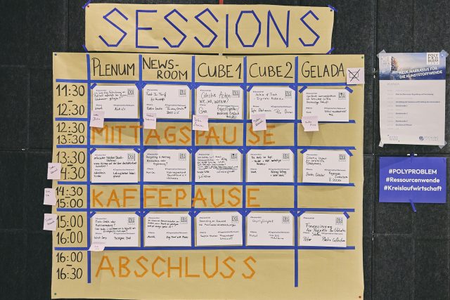 Anstelle klassischer Vorträge setzte das Treffen auf das offene Format eines Barcamps. Hierbei bestimmen die Teilnehmenden selbst, worüber gesprochen wird. In insgesamt 16 Sessions in drei Runden entstanden lebhafte Diskussionen über Mehrwegsysteme, Recyclingmethoden, Produktdesigns, aber auch über gesellschaftliche Narrative, die den Wandel behindern oder beflügeln können. Die Themen reichten von Kreislaufwirtschaft und Recyclingquoten bis zu sozialem Engagement und Kommunikation. Deutlich wurde: Technische Innovationen allein genügen nicht – entscheidend ist, wie Menschen überzeugt und Strukturen verändert werden können.